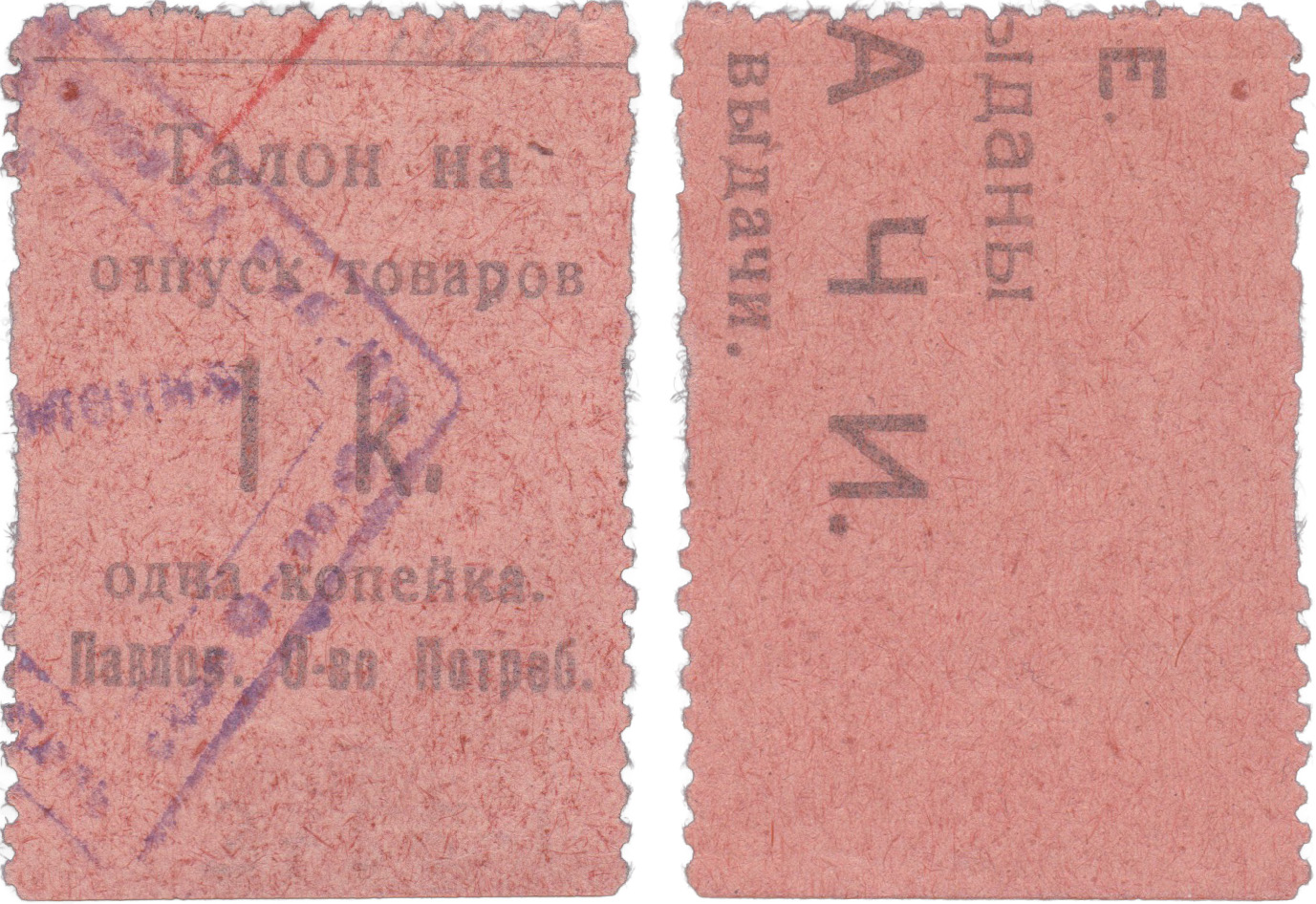 Талон на отпуск товаров 1 Копейка 1922 год.